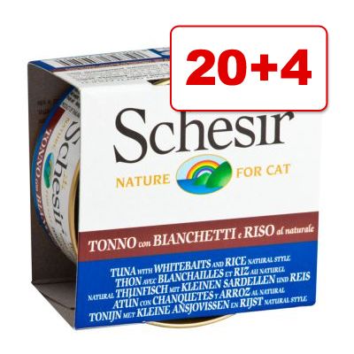 24 x 85 g Schesir: 22 + 2 purkkia kaupan päälle! - Natural with Rice: tonnikala, naudanliha & riisi hintaan 18.99 €