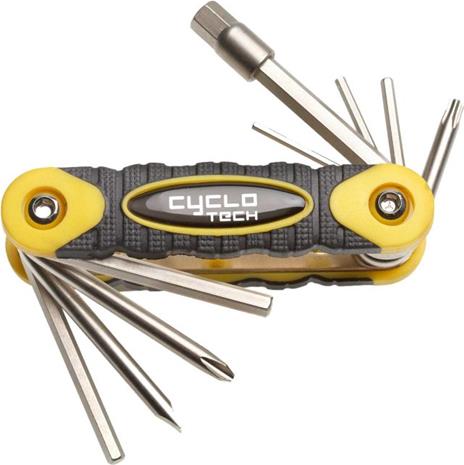 Työkalussa kuusiokoloavaimet 2, 2,5, 3, 4, 5, 6 ja 8mm sekä risti- ja talttapääruuvimeisselit.