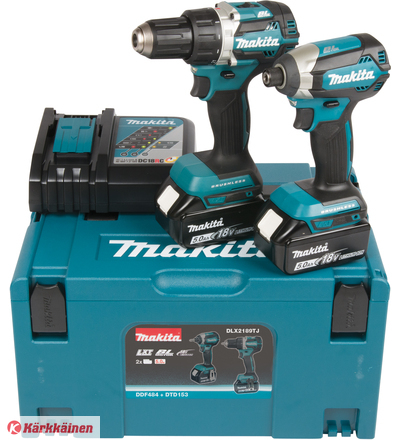 Akkukonesarja Makita DLX2189TJ (DDF484+DTD153); 18 V; 2x5,0 Ah akku