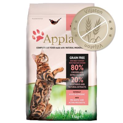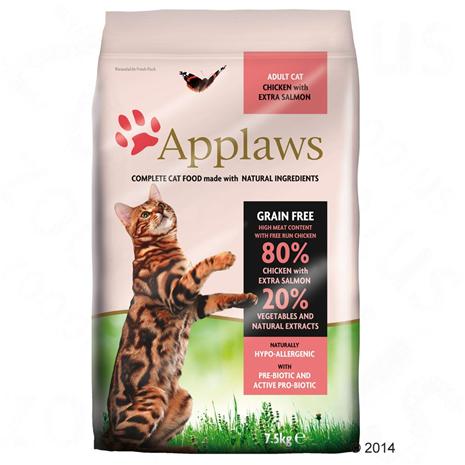 | Tuotekuvaus | Applaws Adult Chicken & Salmon on ilman viljaa valmistettu korkealuokkainen kissanruoka 80%:n lihapitoisuudella. Korkeintaan 15% hiilihydraatteja, hypoallergeeninen. Ei sisällä keinotekoisia säilöntäaineita. Lisätyt antioksidantit huolehtivat luonnollisesta säilymisestä sekä kissasi terveydestä. Ne ovat peräisin mm. seleenistä ja luonnon tokoferoleista. Luonnolliset omega3- ja omega6-rasvahapot vahvistavat lemmikkisi ihoa ja turkkia sekä antavat sille upean kiillon. Applaws sisältää myös puolukkauutetta, joka tukee virtsateitä ja ruoansulatusjärjestelmää. Valmistusaineet: kuivattu kana, kuivattu lohi, kuivattu peruna, siipikarjanrasva, siipikarjaliemi, lohiöljy, sokerijuurikasmassa, kananmuna, kuivattu panimohiiva, kasviperäinen selluloosakuitu, karpalouute, yucca-uute, sitrusuute, rosmariiniöljyuute Ravintosisältö: 47 %, rasva 19,7 %, tuhka 10 %, kuitu 3 %, kalsium 2,12 %, fosfori 1,37 %, A-vitamiini 12000 IU, D3-vitamiini 1200 IU, E-vitamiini (A-tokoferoli) 600 mg, kupari (Kuparisulfaatti) 14 mg. |