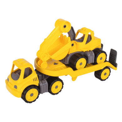 BIG Power-Worker Mini kuljetusrekka + kaivinkone - keltainen