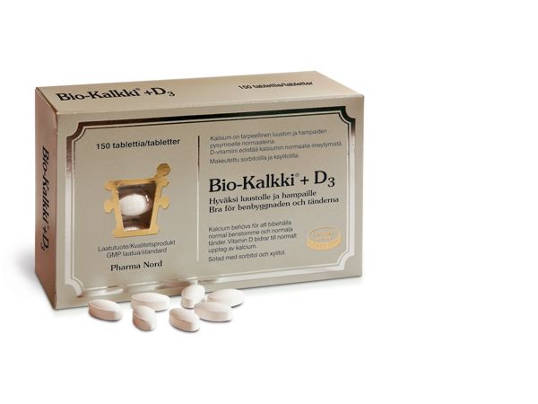 | Tuotekuvaus | Kalsium on elintärkeä, luustoa vahvistava mineraali. 99% elimistömme kalsiumista on luustossamme. Pharma Nordin Bio-Kalk-D3-valmisteeseen on lisätty D3-vitamiinia. |