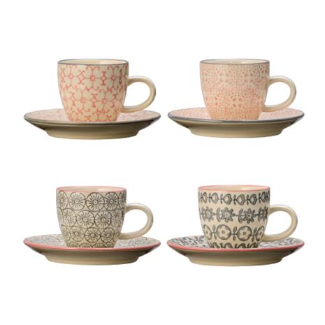 Bloomingville Cécile espressokuppi ja lautanen 4 kpl valkoinen-harmaa-vaaleanpunainen hintaan 51 €