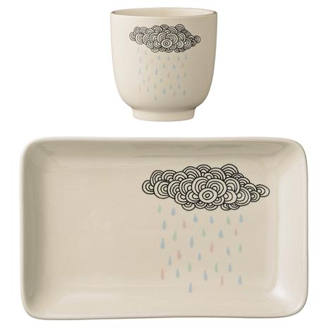 Bloomingville Kuppi & Lautanen Valkoinen Kivitavaraa 2-pack