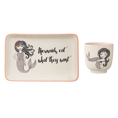 Lastenastiasto Setti Merenneito Kuppi & Lautanen Kivitavaraa, BabyPlates