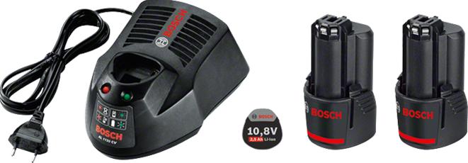 Bosch Aloituspaketti 2 x GBA 12 V 2,5 Ah + GAL 1230 CV