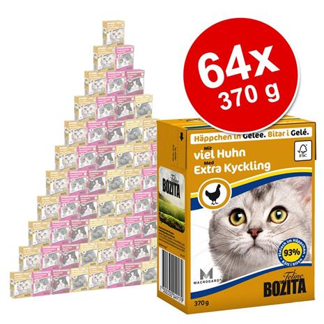 Bozita Chunks -säästöpakkaus: monta makua, 64 x 370 g - lajitelma: kana, naudanjauheliha, kananmaksa, rapu (Jelly)