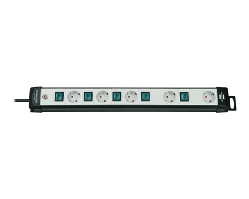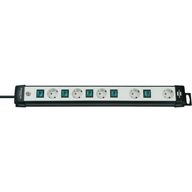 Brennenstuhl Premium Line Technics, virtapaneeli, jossa on 5xCEE 7/4 pistoketta, 1xCEE 7/7 liitin, jokaisella pistokkeella on oma virrankatkaisija, 3m kaapeli, kosketusuojattu, mu/harm