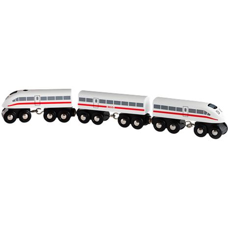| Tuotekuvaus | BRIO Pikajuna on nopea kolmiosainen leikkijuna. Tässä pikajunassa on moderni muotoilu ja sillä voi ajaa lattialla tai Brion junaradoilla.Muista painaa varoitusnappia kun junasi kiiruhtaa eteenpäin, jotta muut ehtivät varoa lähestyvää junaa! Paristot sisältyvät pakkaukseen. 3 v. alkaen. |