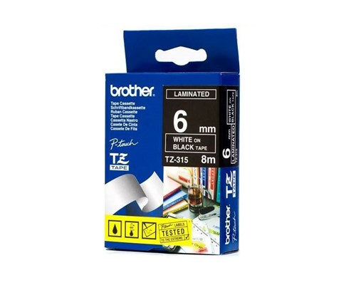 BROTHER TZE315 6 WHITE ON BLACK