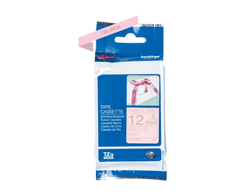Brother Kangasnauhateippi 12mm Tze-re34 Kultainen/vaaleanpunainen