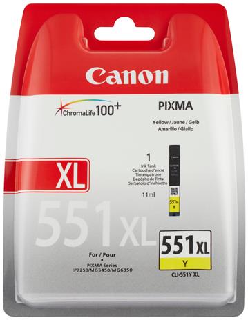 Canon Bläckpatron CLI-551XL Y gul 11 ml för iP7250, iP8750, iX6850, MG5550, MG5650, MG6450, MG7150