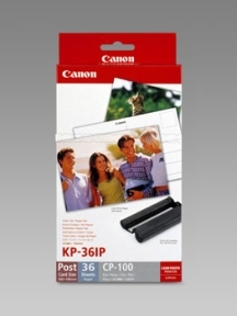 | Tuotekuvaus | Canon Selphy -sarjan sublimaatiotulostimien kanssa yhteensopiva tulostusmateriaalipakkaus joka pitää sisällään 36kpl 10x15cm papereita jossa tulostettavan puolen takaosassa postikorttipohja sekä tulostimen värikasetti. |