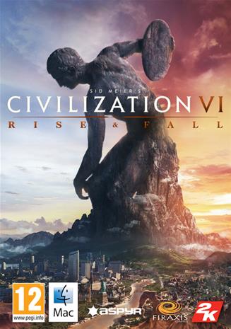 | Tuotekuvaus | Civilization VI: Rise and Fall on suositun PC-pelin lisäosa, joka tuo lisää mausteita valtakuntasi taipaleelle aikakaudesta toiseen vaihtuvien haasteiden edessä. Civilization VI: Rise and Fall kuljettaa sinut historian alkuhämäristä avaruusajan kynnykselle läpi sivilisaatioiden suvantohetkien ja kukkeimpien kulta-aikojen. Civilization VI: Rise and Fall sisältää mm. yhdeksän uutta kansakuntaa hallitsijoineen, uusia mahdollisuuksia sivilisaatioiden välisiin liittoutumiin ja lineaarisemmat harppaukset teknologisen kehityksen tiellä. Civilization VI: Rise and Fall ei toimi itsenäisesti, vaan vaatii alkuperäisen Civilization VI -pelin PC:lle. |