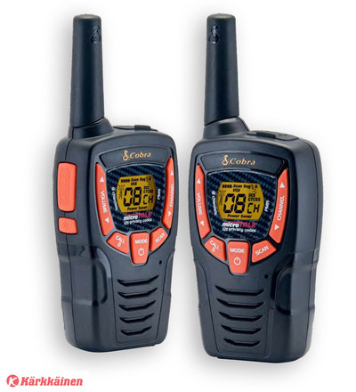 COBRA AM645 PMR radiopuhelinpari+akut(3XAAA/puhelin). Y-haaroitettu MicroUSB-latauskaapeli. Kantama jopa 8 km. VOX, toimii myös itkuhälyttimenä. Ladattavat patt hintaan 59 €