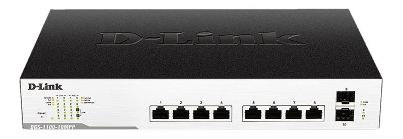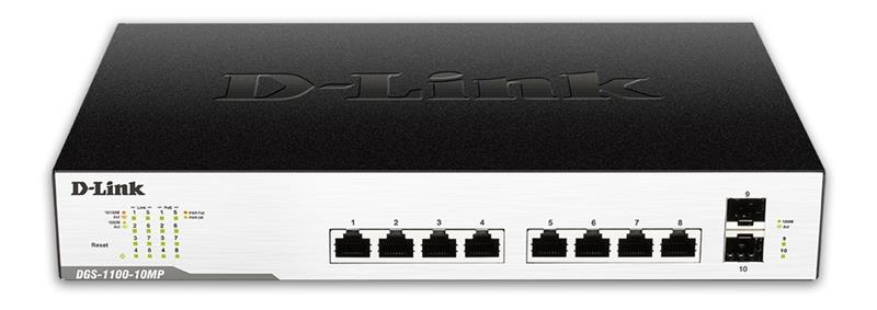 D-Link DGS-1100-10MP - Kytkin - smart - 8 x 10/100/1000 (PoE+) + 2 x Gigabit SFP - työpöytä - PoE+ (130 W)