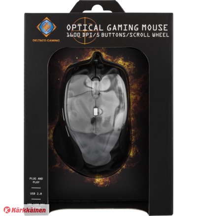 DELTACO GAMING optinen hiiri, 500-1600 dpi, 6 painiketta, rulla, USB 2