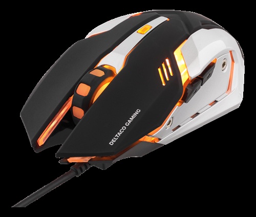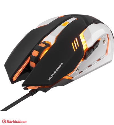 DELTACO GAMING optinen pelihiiri, oranssi valaistus, USB, musta/hopea
