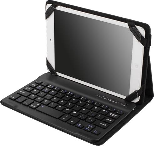 DELTACO kotelo irroitettavalla näppäimistöllä 7" tableteille, Bluetooth, USB, pohjoismaalainen näppäimistö, musta