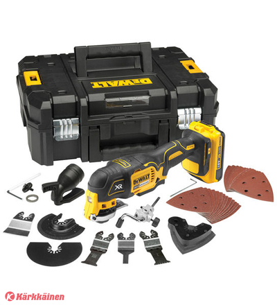 DeWalt DCS355D2, monitoimityökalu 18 V + kaksi 2,0 Ah Li-ionakkua, lisävarustesarja ja laukku hintaan 388 €