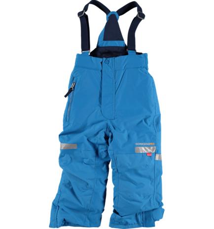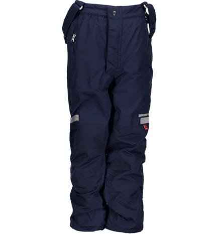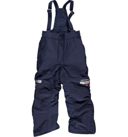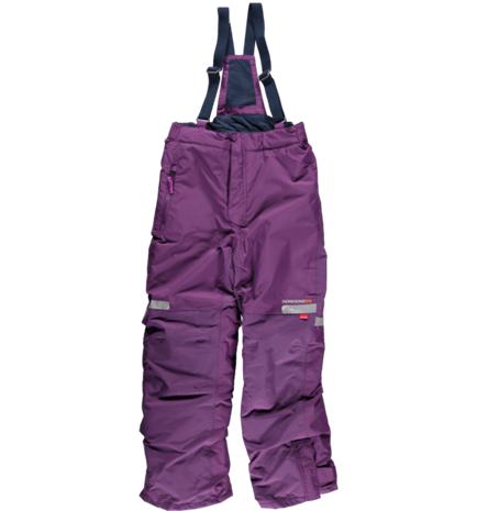 | Tuotekuvaus | Vuoratut lasten ulkohousut, joissa heijastimet lahkeiden etu- ja takaosassa. Housuissa on henkselit ja tasku sekä pehmeä fleecevuori vyötärön sisäpuolella. Jallkalenkkien avulla kengät pysyvät tukevasti jaloissa. Veden- ja tuulenpitävä materiaali. PFC-vapaa. |