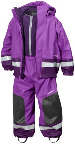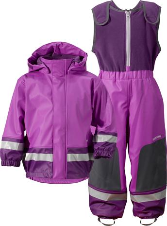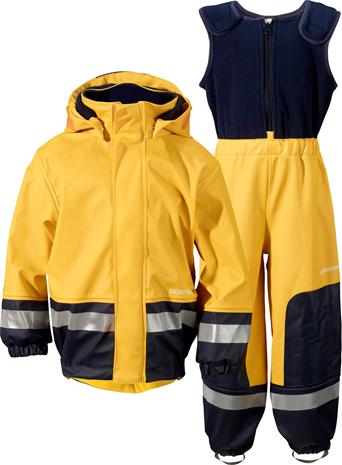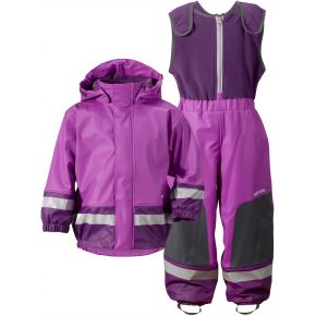 | Tuotekuvaus | Tuulen- ja vedenpitävä sadeasu Galon® -pintamateriaalilla. Asussa on useita heijastimia, sekä vahvikkeet polvissa ja takamuksessa. Takissa on kätevästi irrotettava huppu. Sadeasun sisäpuoli, sekä selän ja rinnan peittävä henkseliosa on pehmeää fleeceä. PFC-vapaa. |