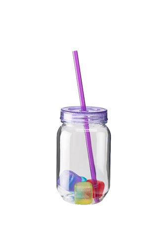 Lasi kovaamuovia lila pillillä kannella 4 kpl jääpaloja 50cl, DrinkingGlass