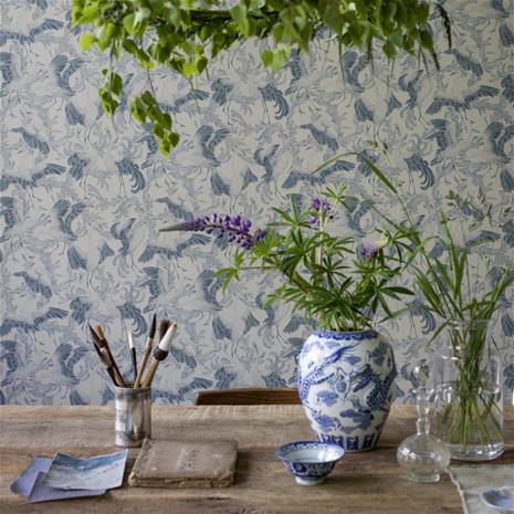 Engblad & Co Dancing Crane tapetti vaaleansininen