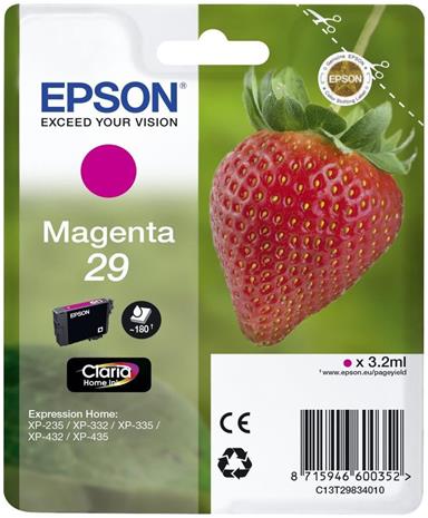 Epson 29 - 3.2 ml - magenta - alkuperäinen - blister RF:llä/äänihälyttimellä - mustepatruuna malleihin Expression Home XP-235, 245, 247, 332, 335, 342, 345, 432