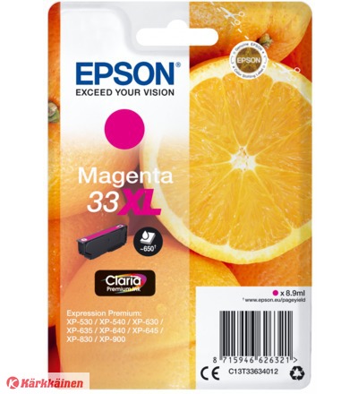 Epson 33XL - 8.9 ml - XL - magenta - alkuperäinen - kuplapakkaus - mustepatruuna malleihin Expression Home XP-635, 830, Expression Premium XP-530, 540, 630, 635