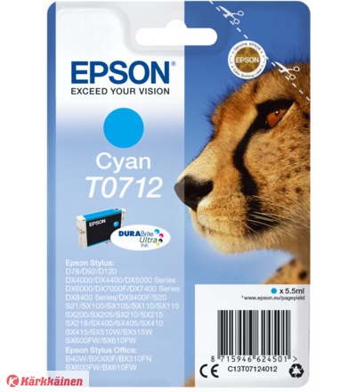 C13T071240 EPSON T0712 Cyan / Tarvike / ""Best quality"" testi voittaja