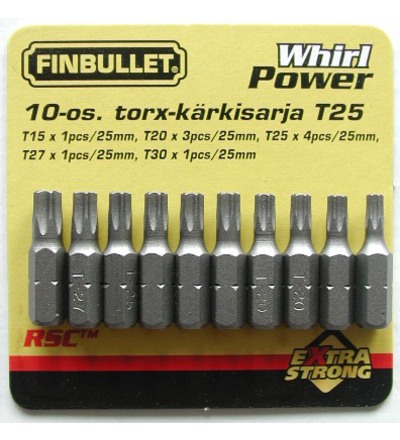 Finbullet S2 25 mm 10-osainen torx kärkisarja