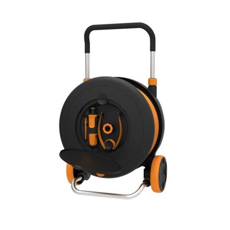 | Tuotekuvaus | Suurimmassa kastelukärrykelassamme on kaikki mitä tarvitset suurelle pihalle, puutarhalle tai terassille. Käytännöllinen lisäosien säilytystila kelan sisällä sisältää kastelusuuttimen, 3 kokoa sisältävän hanaliittimen ja kastelusuuttimen sadettamiseen -kaiken mitä tarvitset kastelun aloittamiseen. Tämän lisäksi kastelukela on erittäin kevyt ja helposti siirreltävä. Tyylikkäästi muotoiltu kela sopii niin terassille kuin puutarhaankin. |