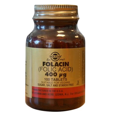 Solgarin Folacin sisältää 400 mcg foolihappoa per tabletti.