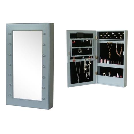 Furniture, Seinäpeili & korusäilytys LED-valaistuksella, Harmaa hintaan 44.1 €
