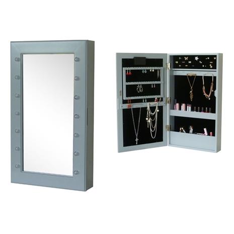 Furniture, Seinäpeili & korusäilytys LED-valaistuksella, Harmaa