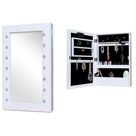 Furniture, Seinäpeili & korusäilytys LED-valaistuksella, Valkoinen hintaan 44.1 €
