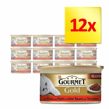 Gourmet Gold Dä©licatesse en Sauce 12 x 85 g - naudanliha & kana tomaattikastikkeessa hintaan 5.79 €
