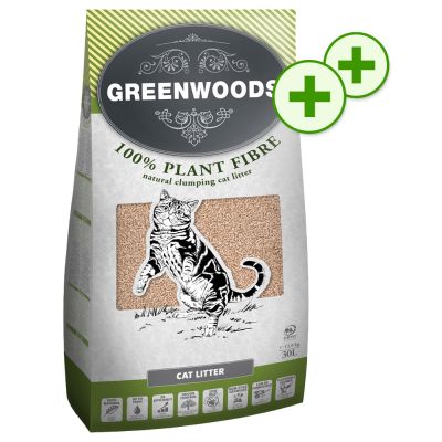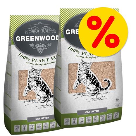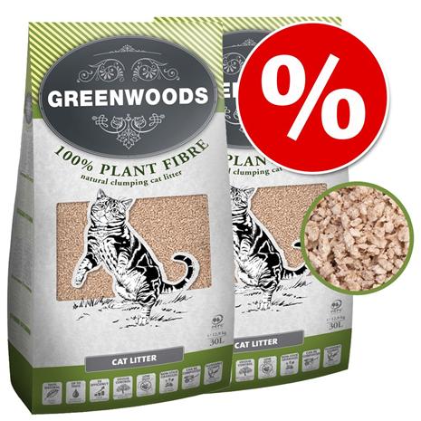Tuplapakkaus: Greenwoods Plant Fibre -kissanhiekka - 2 x 30 l