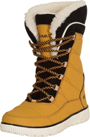 | Tuotekuvaus | Naisten talvisaappaat aktiiviseen käyttöön. Laadukkaasta nahasta valmistettu päällinen kestää hyvin niin säätä kuin kulutustakin, ja fleecevuori pitää jalkasi lämpiminä. Kestävä ja pitävä TR-kuminen ulkopohja. Hyvin istuvassa nauhoilla kiristettävässä saappaassa on anatomisesti muotoiltu irrotettava pohjallinen. |