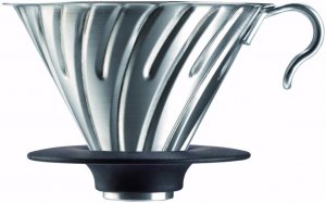Hario V60 Dripper koko 02 teräksinen suodatinsuppilo silikonikauluksella