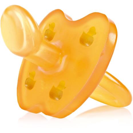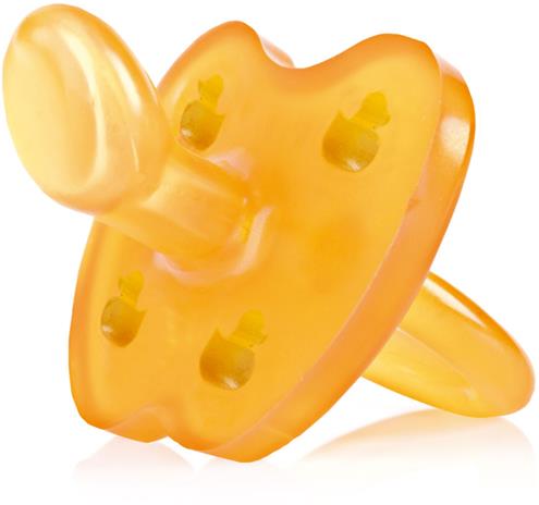 | Tuotekuvaus | Hevea tutti on valmistettu 100% luonnonkumista ja se on pehmeä ja hellävarainen lapsen kasvoja vasten. Kilpi on perhosen muotoinen ja suuosa anatomisesti muotoiltu. Kilvessä on hauska ankka-kuviointi. Tutti on valmistettu yhdestä osasta joten siihen ei kerry niin helposti bakteereja mikä tekee tutista erittäin hygieenisen. Ikäsuositus 3-36kk. |