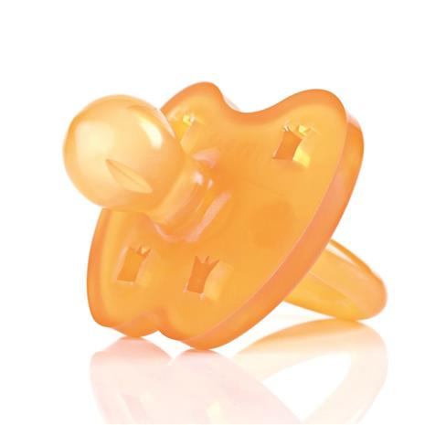 | Tuotekuvaus | Hevea tutti on valmistettu 100% luonnonkumista ja se on pehmeä ja hellävarainen lapsen kasvoja vasten. Kilpi on perhosen muotoinen ja suuosa pyöreä. Kilvessä on hauska kruunu-kuviointi. Tutti on valmistettu yhdestä osasta joten siihen ei kerry niin helposti bakteereja mikä tekee tutista erittäin hygieenisen. Ikäsuositus 3-36kk. |