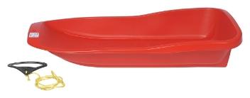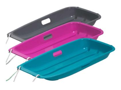 Koko noin 90x39cm. Mukana vetonaru., Muovinen pulkka lasketteluun tai vedettäväksi. Mukana vetonarut.