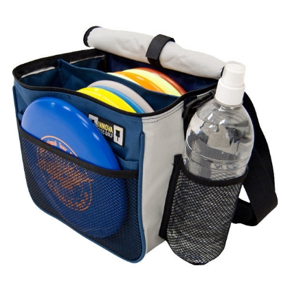 | Tuotekuvaus | Aloittelijan frisbeegolf-laukku ilman kiekkoja. Pehmustettu laukku joka vetää 6-12 kiekkoa ja juomapullon. 600 Denierin kestävä Nylon-kangas Keskeltä jaettu iso tasku kiekoille 6-12 frisbeegolf kiekkoa (kiekot eivät kuulu laukkuun) Erillinen putteritasku Yksi vetoketjullinen tasku pikkutavaroille putteritaskun takana Paikka vesipullolle sivussa Pehmustettu olkahihna |