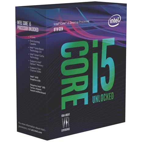 | Tuotekuvaus | Kuusiytiminen ja -säikeinen Intel Core i5-8600K -prosessori tuo lisää potkua pelisessioihin tehokkaalla Coffee Lake -arkkitehtuurilla. Intel Core i5-8600K -prosessori tarjoaa mahdollisuuden ylikellotukseen ja erilaisiin jäähdytysratkaisuihin turbotilan ja lukitsemattoman CPU-kertoimen avulla. Intel Core i5-8600K -suorittimen kellotaajuus on 3.60 Ghz ja turbotilassa taajuus yltää 4.30 Ghz saakka. Välimuistia Intel Core i5-8600K -prosessorista löytyy yhdeksän megan verran. |