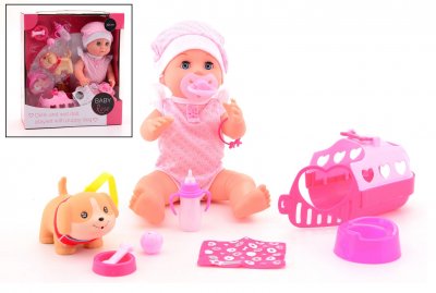 Interaktiv docka med med hund och tillbehör - nästan som en riktig bebis!