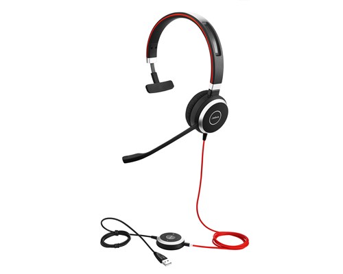 JABRA EVOLVE 40 MS Mono langallinen headset, jossa on sekä 3,5mm sekä USB-liitin, optimoitu MS Lyncille, kaukosäädin kaapelissa, musta/punainen