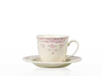 Kahvikuppi ja aluslautanen 20 cl Camille pinkki hintaan 6 €