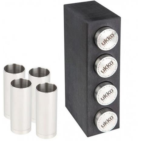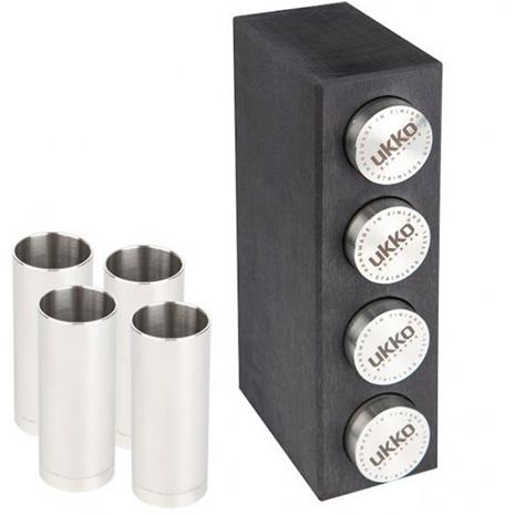Koivu Ukko 4 snapsilasit koivutukissa